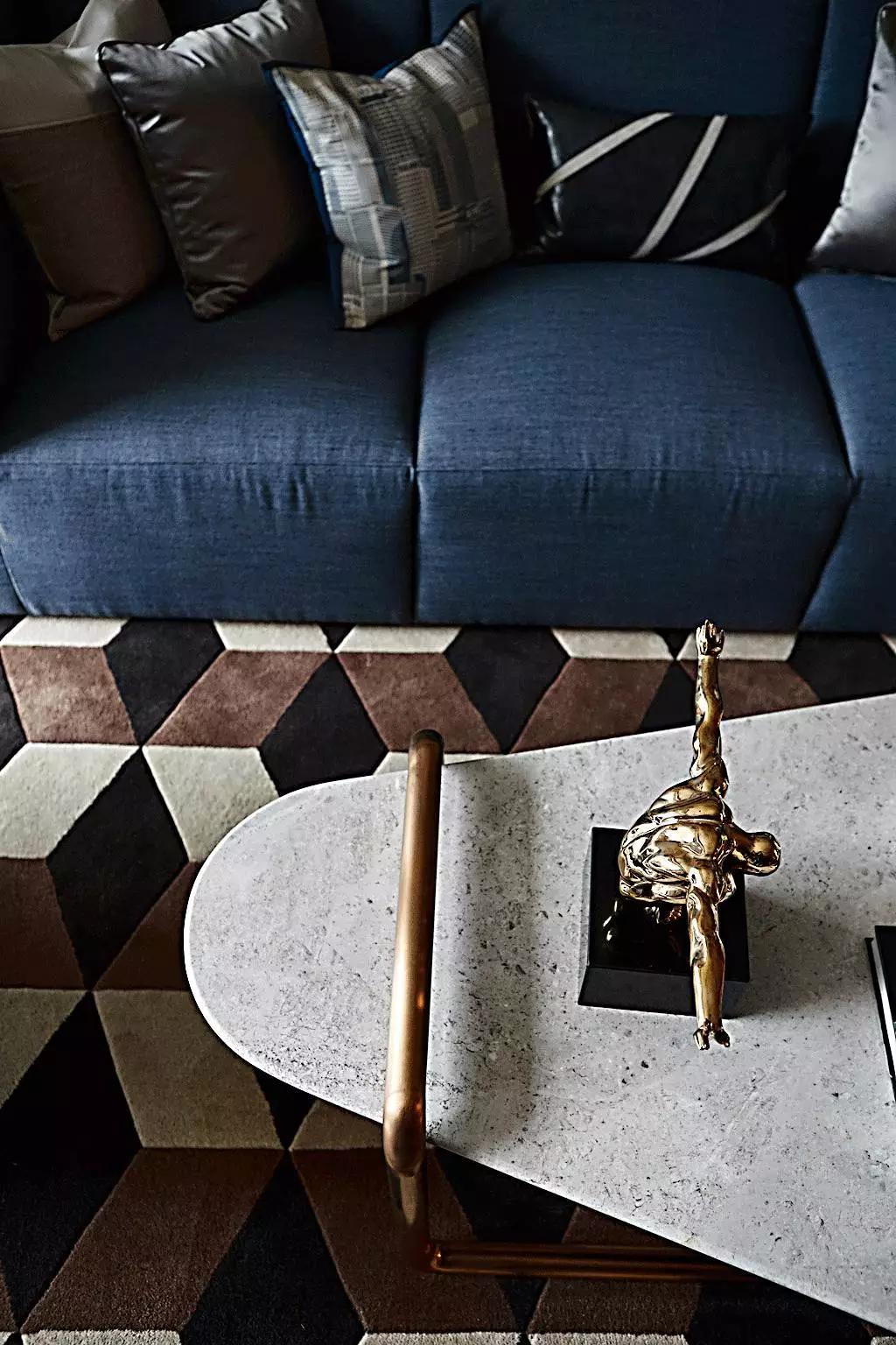 在高級灰的主調(diào)下,任憑灰藍、灰咖、米灰自由穿梭。金屬與大理石外表下的冷酷質(zhì)感、紡織布藝的溫柔親膚與皮革制品帶有的手工溫度,交纏錯綜,剛?cè)嵯酀?。定制壁爐與優(yōu)雅的Minotti沙發(fā),隱約顯露出居所主人優(yōu)越的品味。